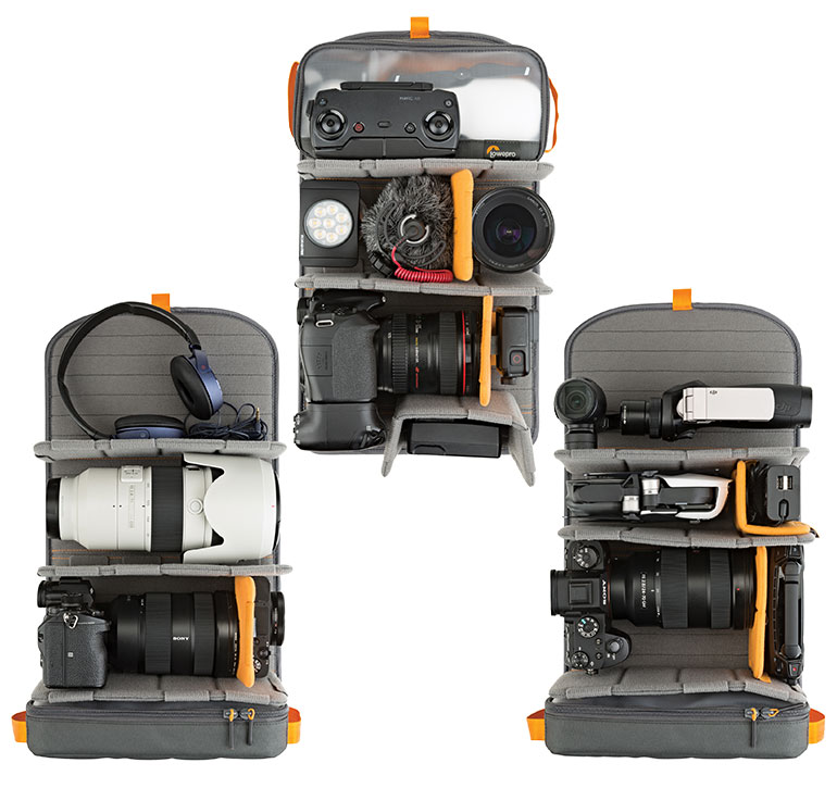 • Drei modulare Fächer, die Sie individuell für Ihre Kameraausrüstung, Drohnen oder andere Geräte nutzen können.